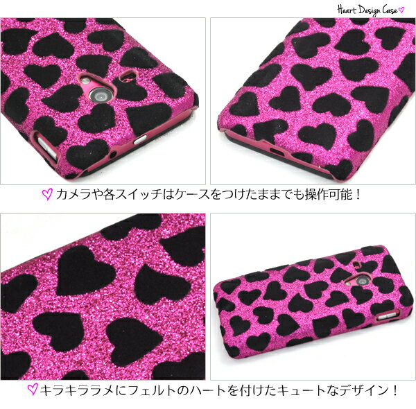 可愛いハートデザインのAQUOS PHONE EX SH-02F用ハートデザインケース! キラキララメにフェルトのハートを付けたキュートなケースです。