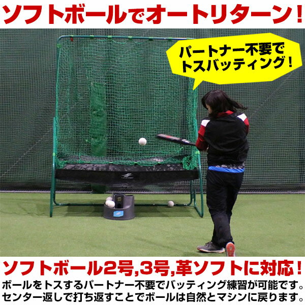 商品説明 ソフトボールでオートリターン! 1人で出来るバッティング練習! ワイドフレームで抜群の安定感! ソフトボール2号/3号/革ソフトに対応! ボールをトスするパートナー不要でバッティング練習が可能です。