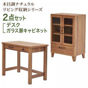パソコンデスク + キャビネット 机 デスク PCデスク おしゃれ 安い 北欧 オフィス 引き出し ミニ 食器棚 キッチン 収納 棚 ラック ロータイプ コンパクト ( パソコンデスク2点(デスク+キャビネット) ガラス扉タイプ )