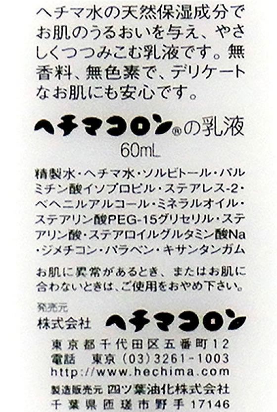 【商品説明】ビタミンCやペクチンなどの酵素をはじめ、サポニン、アミノ酸、尿素などの美肌成分を豊富に含む天然のヘチマ水のみずみずしさをそのままに、ベタつかず、サラリとした使用感の乳液に仕立てました。